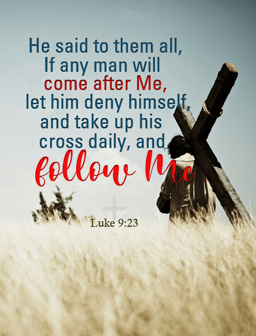 What a beautiful verse in the bible I mean for real !!!! It is so important for us to follow God and to carry our own cross. What exactly does it mean to carry your own cross though? Well lets look at Jesus how he carried the cross all the way up the mountain. He knew the whole time he was going to die for all of our sins. He knew exactly what he was fighting for. To him it didn’t matter how hard or painful it was to carry that cross. In his mind He loved us so much it didn’t matter. He knew this was not his home. He was willing to Sacrifice himself for us. So for us to carry our own cross we need to be able to sacrifice worldly things in our life for God. Just how the bible verse says deny yourself, that’s hard to do. I think naturally we all tend to just go with our own instinct. God doesn’t want that for us though he wants us to trust and follow him and the only way to do that is to deny yourself. Meaning all those worldly sins should be turned away from. It may make you the odd ball but that’s good because the world will tell you you’re a weirdo and a freak; but God will tell you “you’re the salt of this earth” (Mathew 4: 13). Which means you are doing Gods work that’s why you stand apart. So to carry your own cross would mean that We stay strong in our faith with Christ and even when things get hard in this world; we continue to keep walking by faith and keep going. We must know in the back of our minds that this world is not our home. Our home is up in Heaven with God and we are not promised that we wont have struggles on this earth. We are promised that with our faith and belief in Jesus Christ we will have eternal life in Heaven with him. “For God so loved the world, that he gave his only begotten Son, that whosoever believeth in him should not perish, but have everlasting life” (John 3:16). So I encourage you to pick up your cross and be God’s strong warrior even when things get hard. You keep pushing and stay strong in your faith and belief. Be that example for other Christians !!!!
